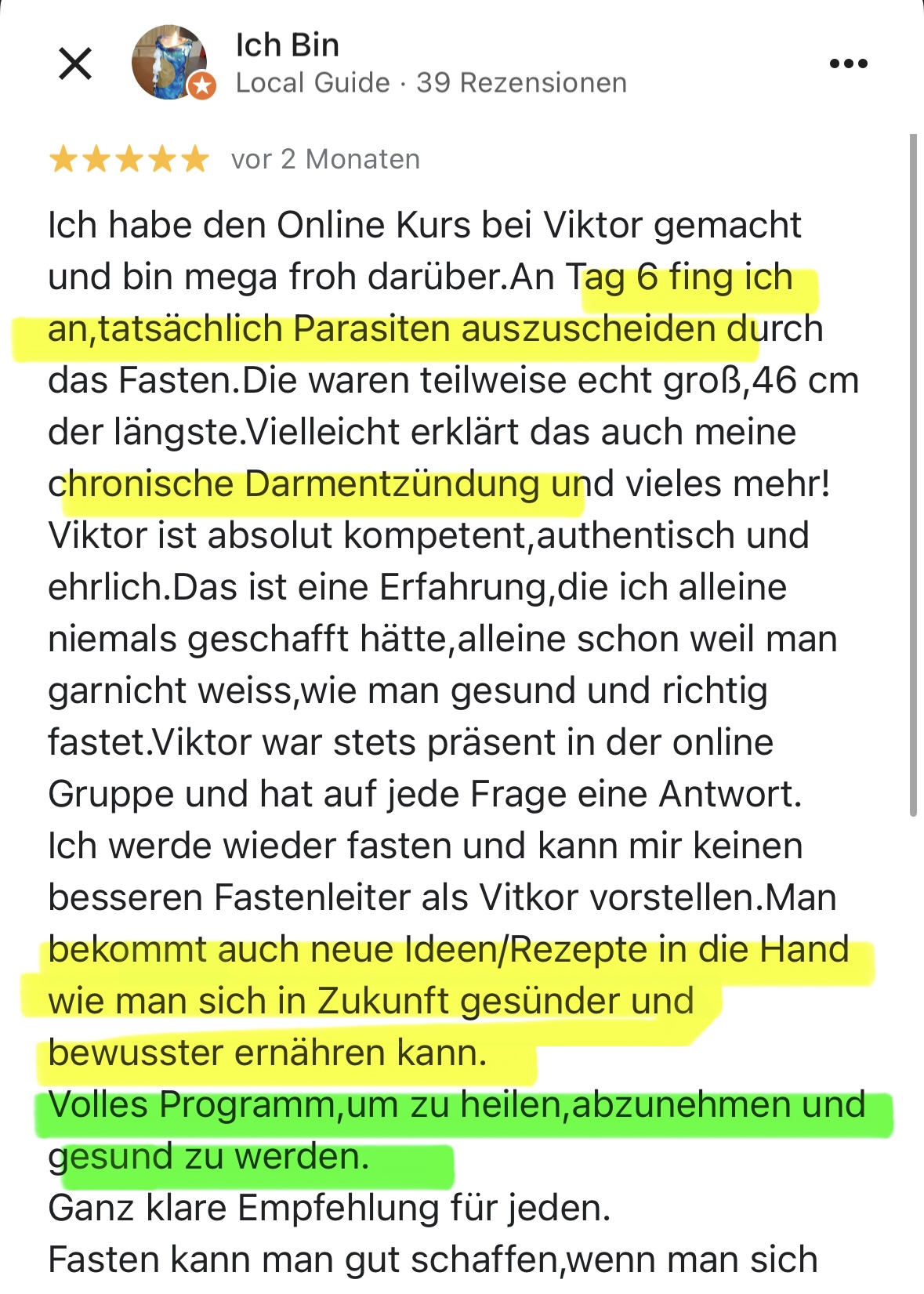 Du erhältst sofort den Zugangslink per E-Mail und zusätzlich den exklusiven 🎁 Bonus: einen PDF-Auszug aus meinem Parasitenfrei-Protokoll.